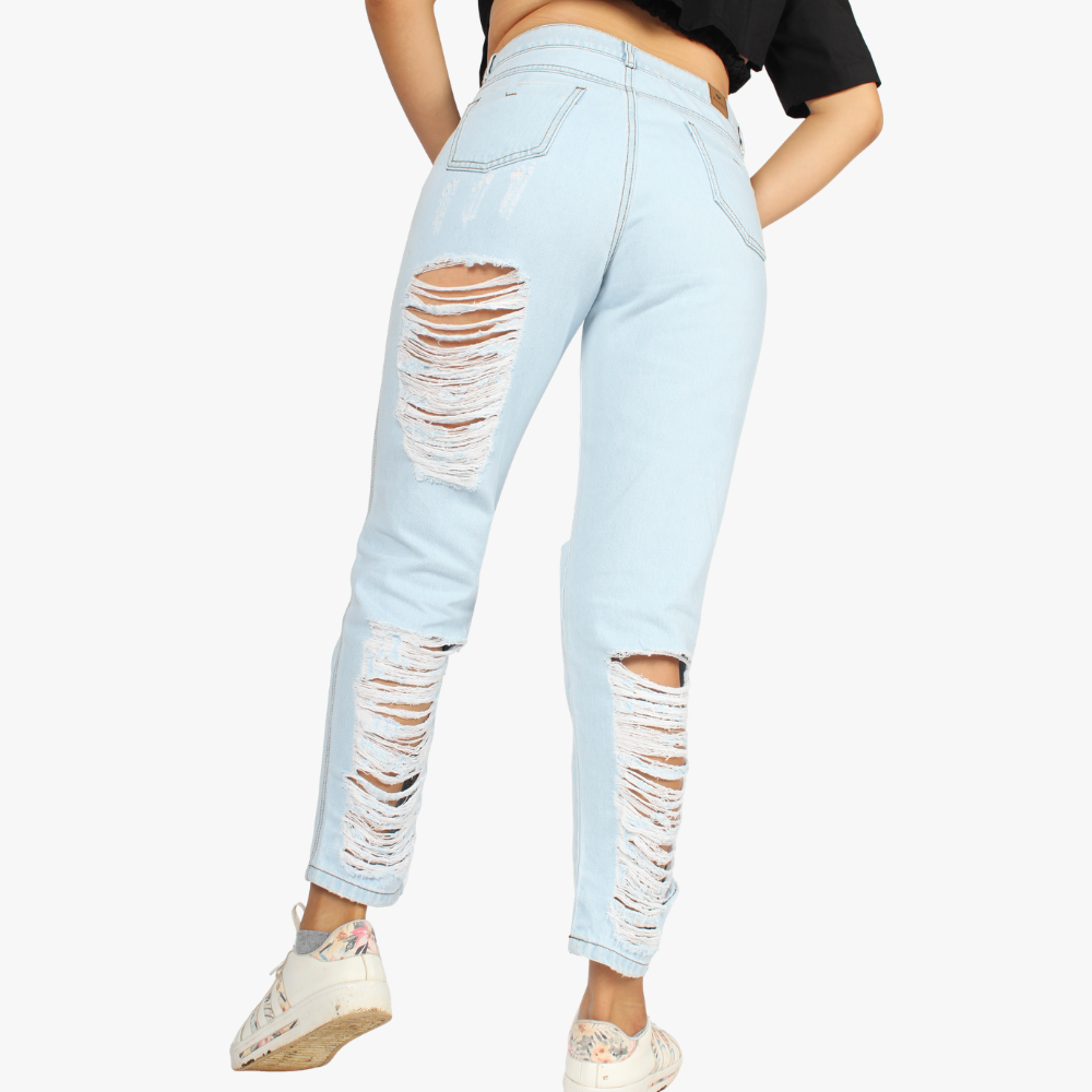 Jean rasgado para dama en color claro