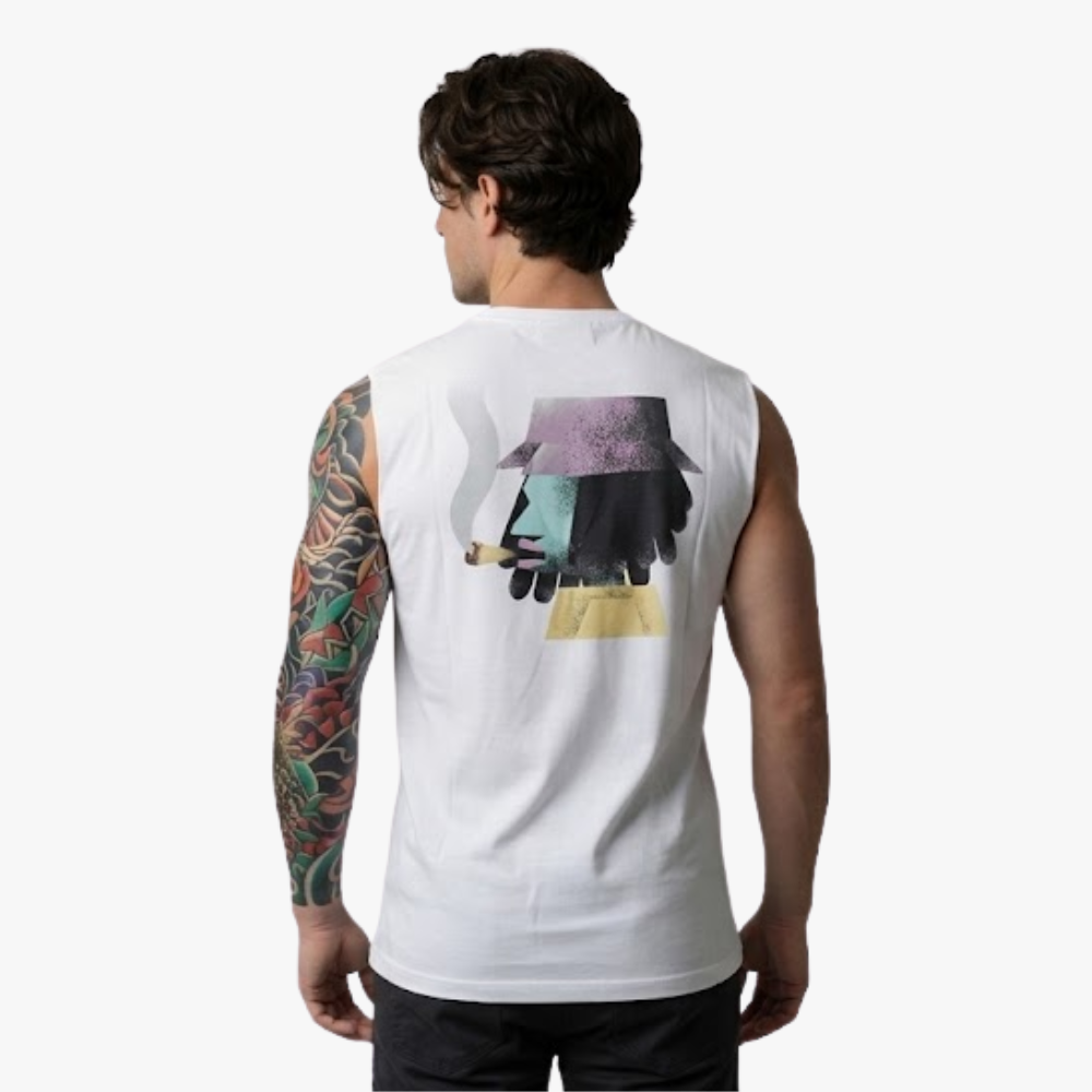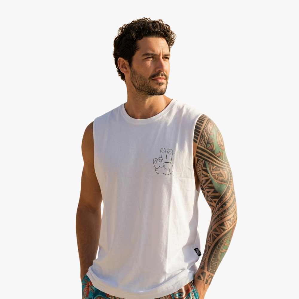 Polo manga cero color blanco con estampado en espalda